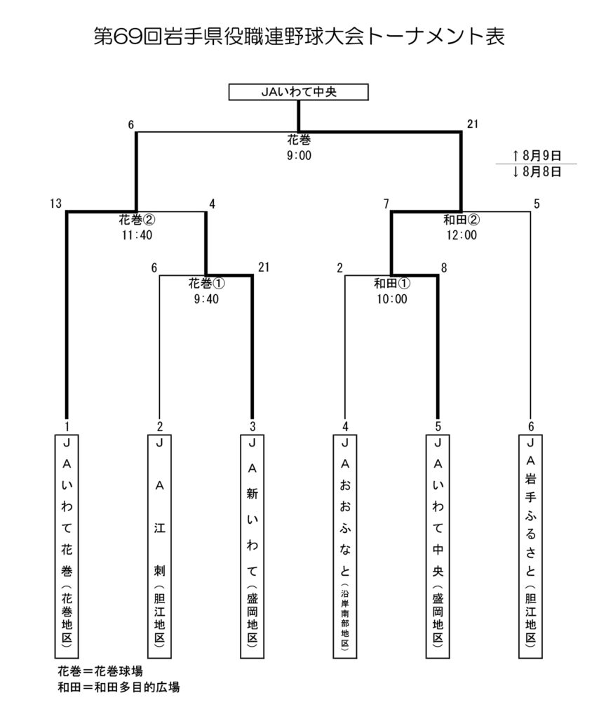 令和8年8月8日・9日、「花巻球場」および「和田多目的広場」にて、第69回野球大会を開催しました。 本大会には6チームが参加し、予選から白熱した試合が繰り広げられました。その結果、JAいわて中央が2年連続の優勝を果たしました。
