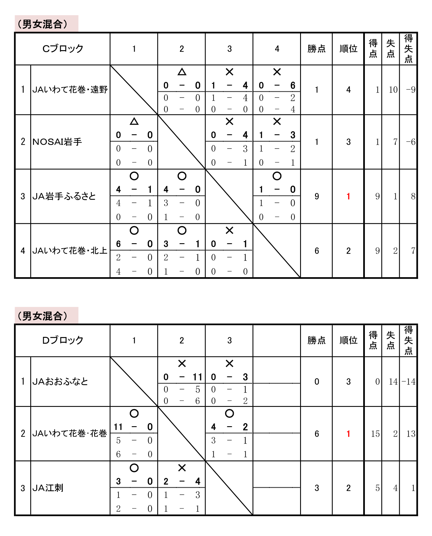 Dブロック優勝(男女混合)優勝:JAいわて花巻・花巻