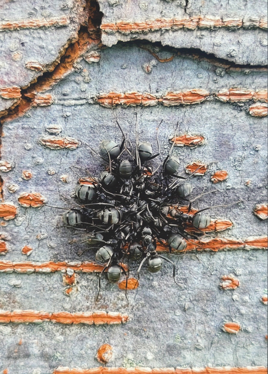 正にネイチャーですね。気を付けていなければ撮れない作品でしょう。木の皮がデザイン的で面白く、題名も洒落ています。